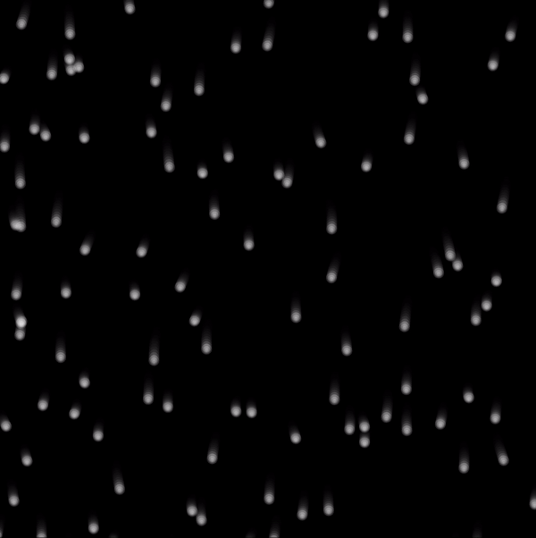 Later I found it is too hard to simulate water drops, after trying noise() function, I found it more like snowflakes.